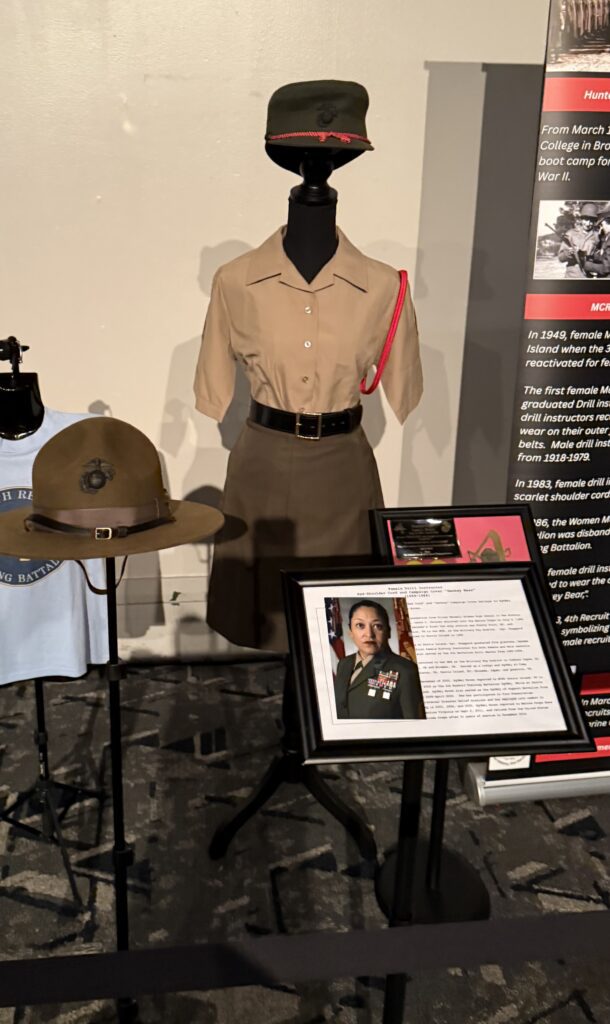 Sergeant Stephanie Fahl, Sergeant Ikea Kaufman, Sergeant Stephanie Jordi, made Marine Corps history by becoming the first females to graduate from a gender-integrated drill instructor course at  Recruit Depot San Diego.